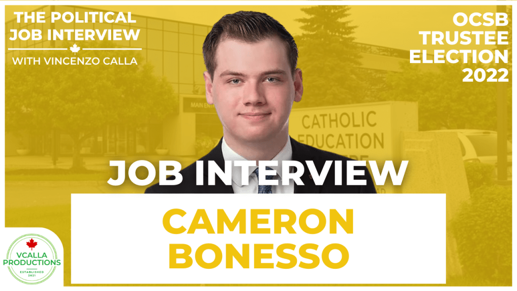 Hello everyone and welcome to The Political Job Interview. Today, I welcome Cameron Bonesso, a candidate for Ottawa Catholic School Board Trustee in Zone 10.